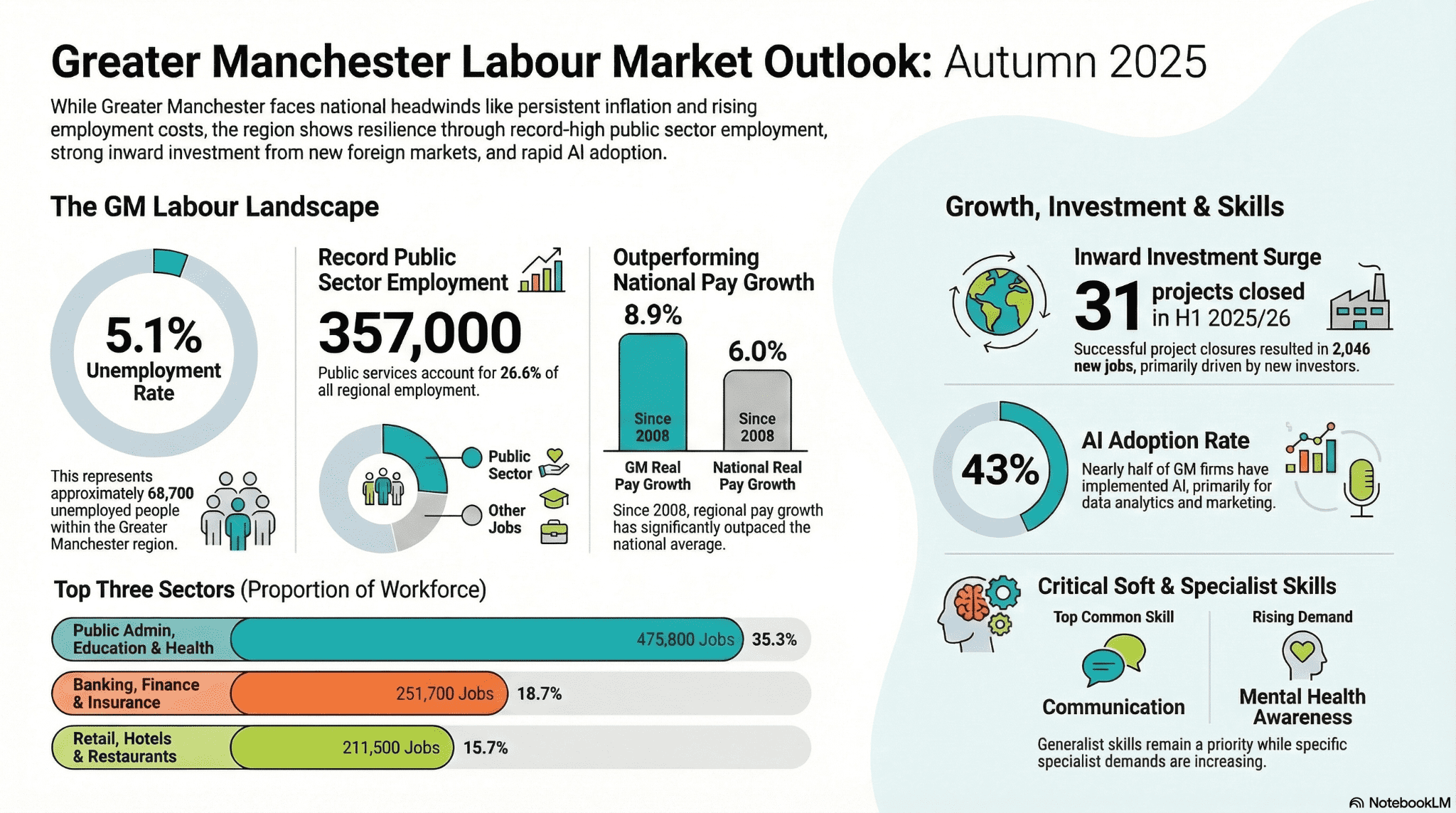 To keep information current, Greater Manchester labour market updates are published each Spring and Autumn and we will place these on the webpage, highlighting key trends and opportunities.
