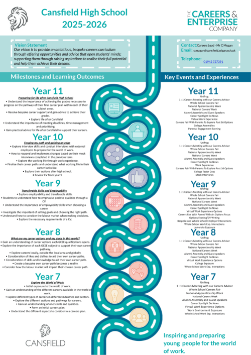 For personalised guidance, you can speak to our Mr Blagbrough, our Careers Advisor. To arrange an appointment, please email: m.blagbrough@cansfield.wigan.sch.uk